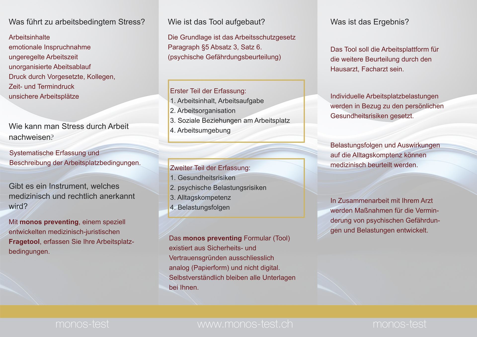 Die Seminare und die Fort- und Weiterbildungen basieren auf den Grundlagen des Arbeitsschutzgesetzes §5 Abs. 3 Nr.6 der Bundesrepublik Deutschland. Für Unternehmen, Mitarbeiter und Mitarbeitervertreter wird die komplexe Umsetzung der Psychischen Gefährdungsbeurteilung möglich gemacht.